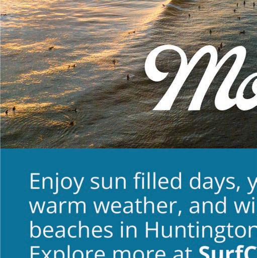 Made up of 10 miles/16 km of uninterrupted beaches, Huntington Beach o ers luxurious oceanfront resorts along Pacific Coast Highway with relaxation amenities, outdoor activities, culinary experiences, and almost everything in between.
