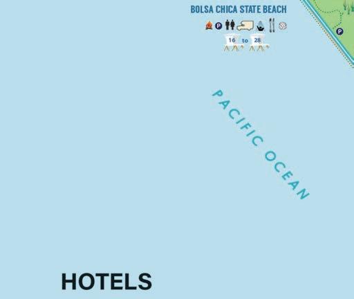 Soak up ocean views and Andalusian-inspired architecture while enjoying full-service resort amenities including cabanas and beach activities. This resort is close to shopping and dining at Pacific City as well as the Pier. (Use the convenient pedestrian bridge to get directly to the beach.) Featuring a coastal chic aesthetic, each accommodation o ers balconies overlooking Huntington Beach, and pet-friendly rooms are also available. Dine at one or more of the five restaurants on the property, get pampered at the world-class Pacific Waters Spa, or simply lounge under the SoCal sun at the heated outdoor lagoon-style pool. 21500 Pacific Coast Hwy., Huntington Beach, 714-698-1234; hyatt.com