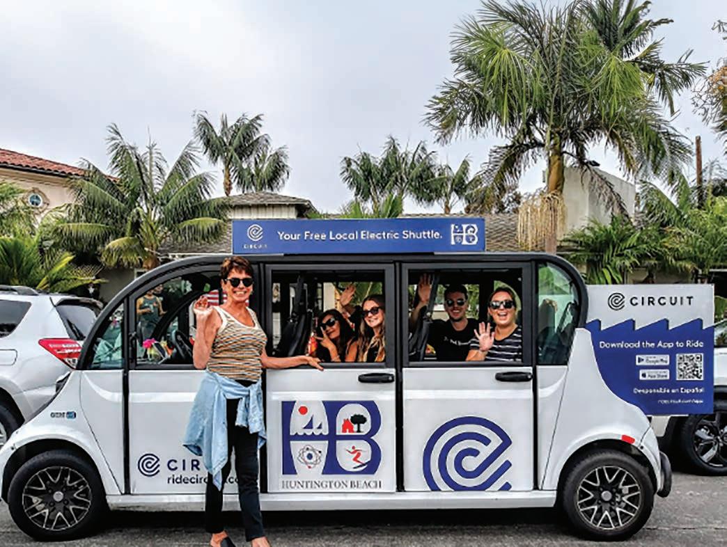Getting around Huntington Beach is easy and a ordable with Circuit (ridecircuit.com), a fleet of eco-friendly electric shuttles. Download the app to view schedules, drop-o points, and payment options.