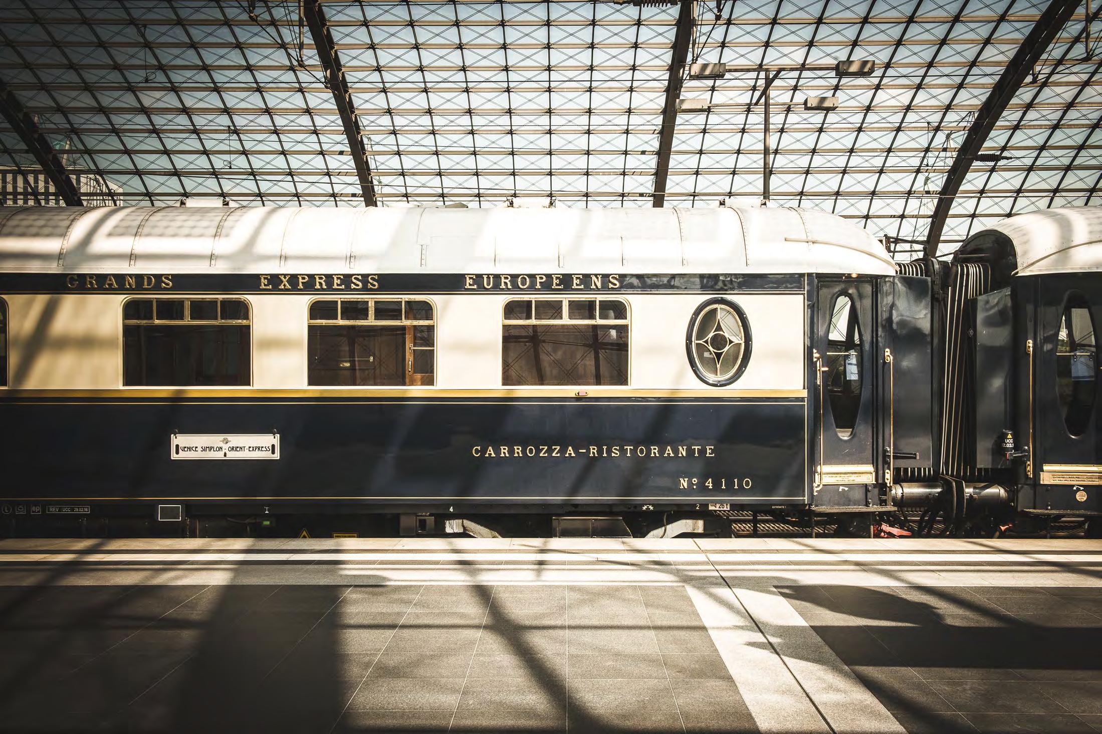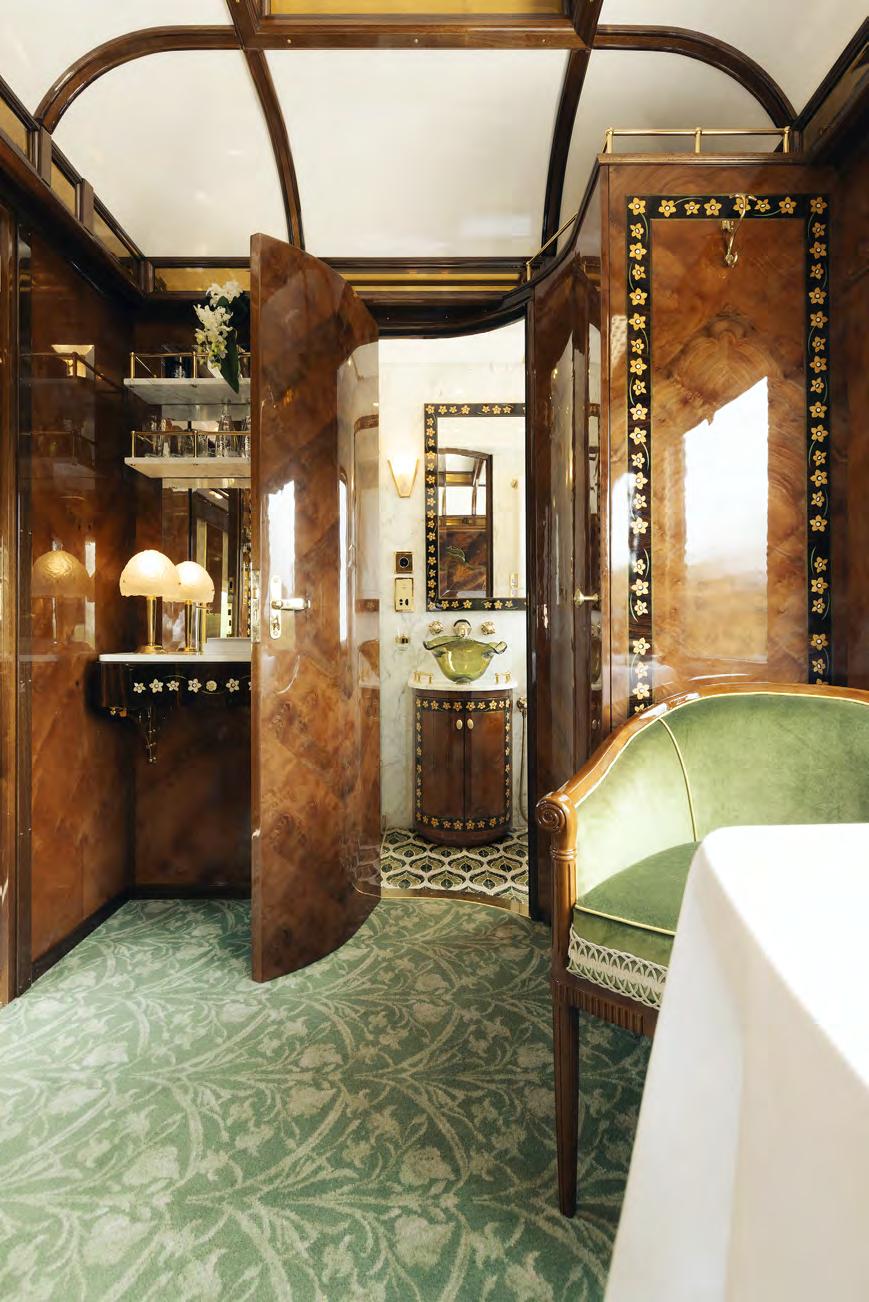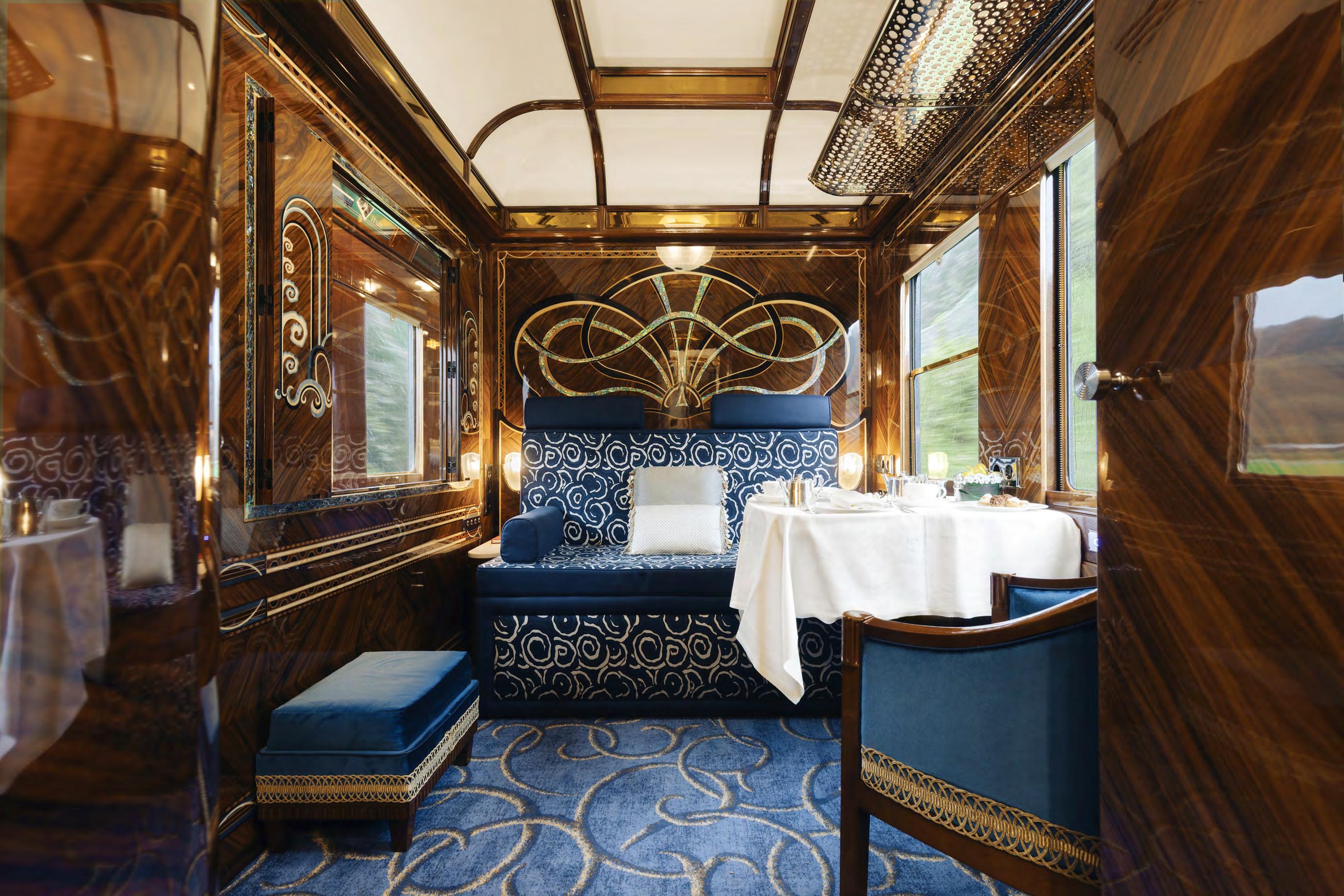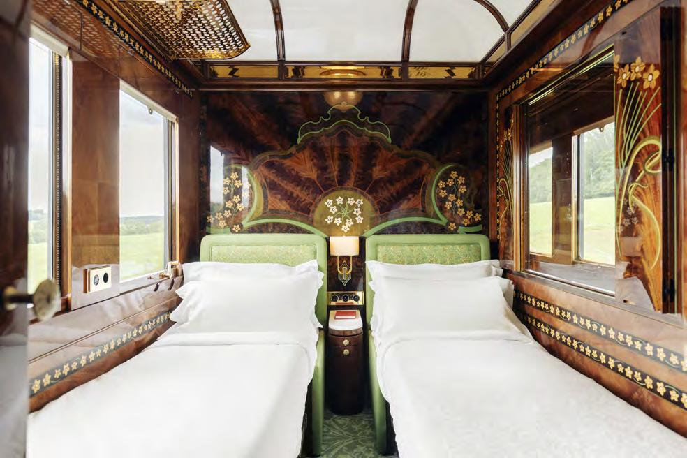 A Historic Twin suite on the fabled Venice Simplon-Orient-Express becomes an elegant sitting room by day, where travelers can take in the view.