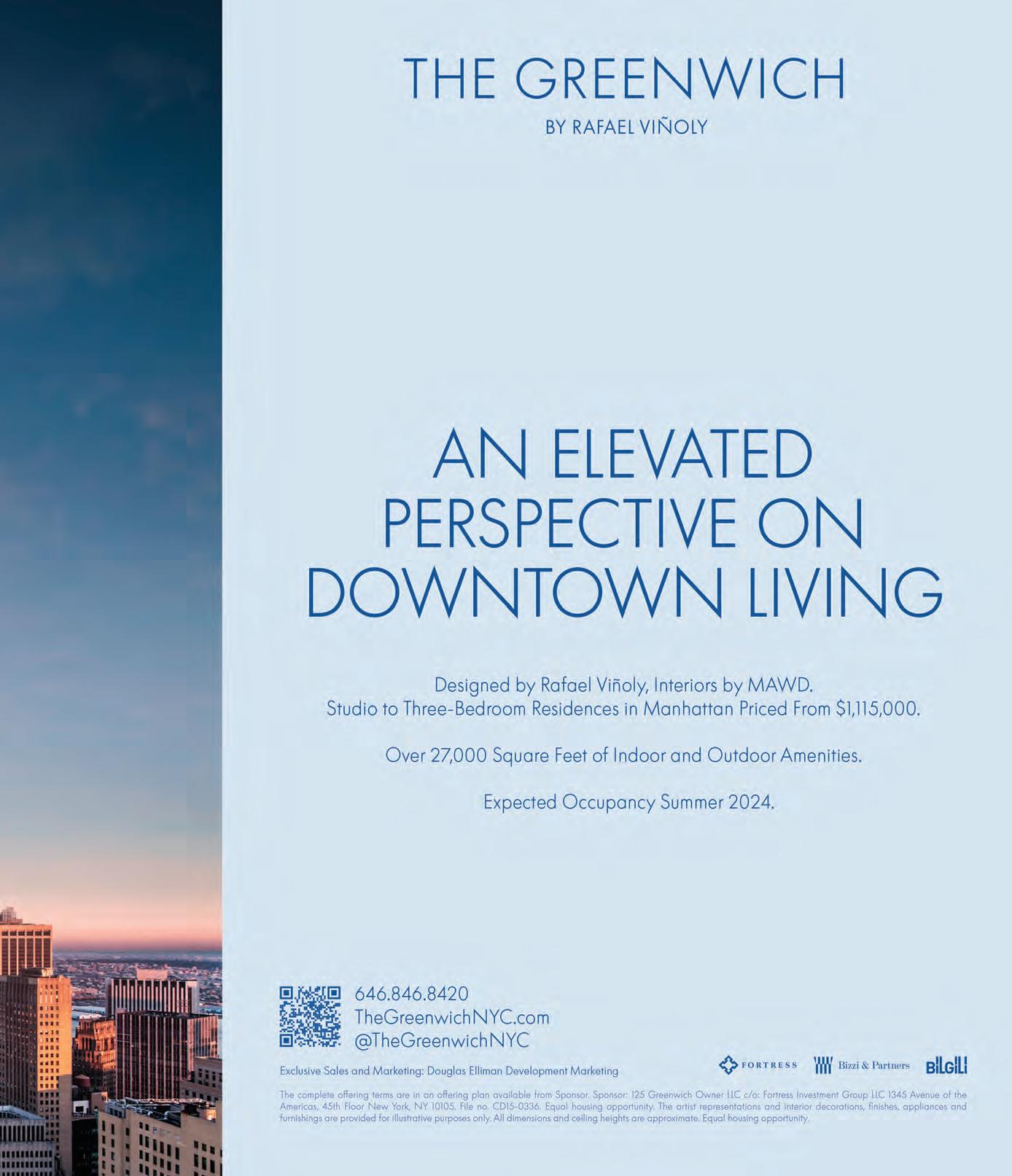 Cover photograph by Eric Piasecki/OTTO © 2024 Douglas Elliman Real Estate. All material presented herein is intended for information purposes only. While this information is believed to be correct, it is represented subject to errors, omissions, changes or withdrawal without notice. All property information, including but not limited to square footage, room count, number of bedrooms and the school district in property listings, should be verified by your own attorney, architect or zoning expert. Equal Housing Opportunity. Elliman magazine is published by Headline Studio for Douglas Elliman Real Estate © 2024 all rights reserved. This spread, lfrom left: