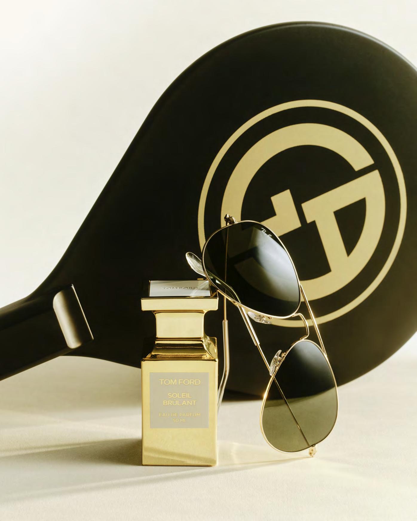 ; Ray-Ban Aviator Classic sunglasses, $180, ray-ban.com; Tom Ford Soleil Brûlant eau de parfum, $395/50 ml, tomfordbeauty.com