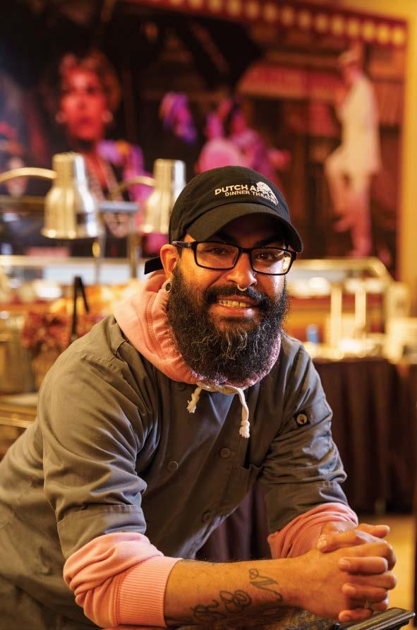 CHEF ALEX’S CAREER in the hospitality industry began when he worked in a restaurant during college. He was studying to be a mechanical engineer, but says he ultimately decided to go in another direction career-wise. “Growing up, I watched my mom cook. I learned a lot from her and by working in restaurants,” he explains. “My daughter was performing in a show at Dutch Apple two years ago and she told me about the opening here at the theatre.” Chef Alex’s story prompts Nanci Jo to remark, “We’re very family-oriented.”