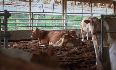 Resting is a key element of herd health and productivity. Here the cows have ample room to rest and chew their cuds.