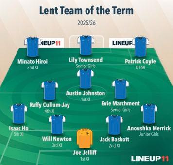 ‘lobsters’ gathered to save our season and avoid relegation. A 4-2 thrashing of top-of-the-league giants evidenced the ‘new manager bounce’, while the brave decision to move Will Bainbridge (School 2016–2018), a centre-back in his College days to striker proved genius, scoring a hat-trick as the team came out trumps 4-0 in a massive relegation six-pointer.