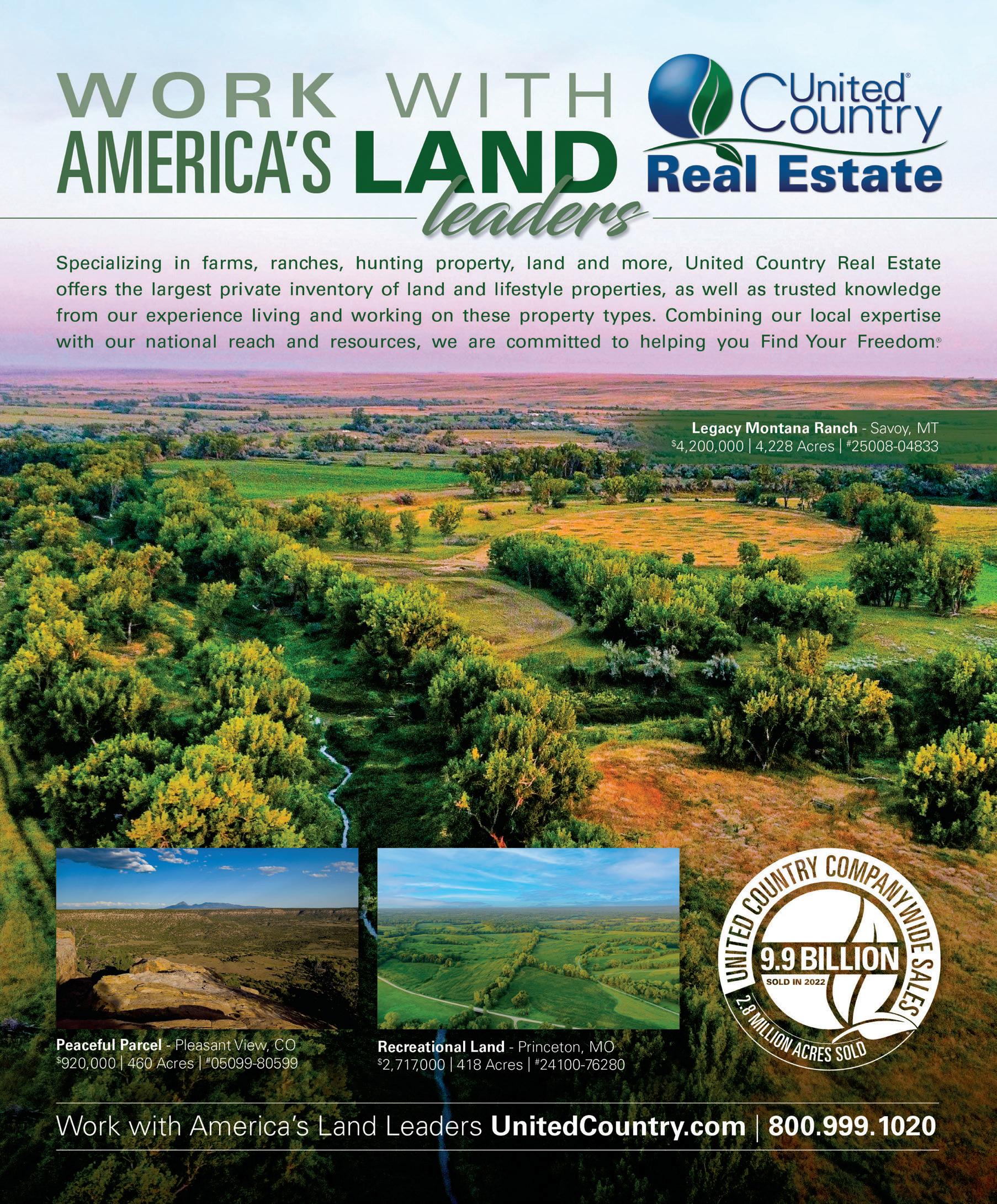 ©Copyright 2023 CoStar Group. All rights reserved. No part of this publication may be reproduced without written permission from the publisher. LAND Magazines are published by CoStar Group, 100 Congress Ave, Suite 1500, Austin, Texas 78701. Information provided to CoStar Group is deemed reliable but not guaranteed. The publisher will not be responsible for any omissions, errors, typographical mistakes or misinformation within this publication. Measurements and figures are approximate. Properties are subject to errors, omissions, prior change or prior sale. The real estate advertised in this magazine is subject to the Federal Fair Housing Act of 1968 and it’s amendments. This magazine will not knowingly accept any advertising for real estate which is in violation of the law. Dwellings advertised in this magazine are available on an equal opportunity basis. Printed in the USA.