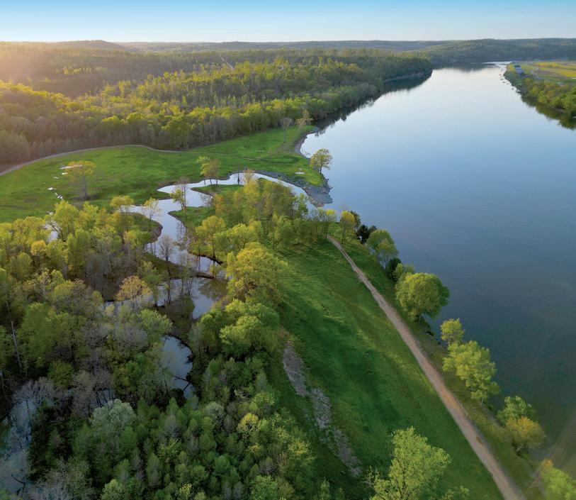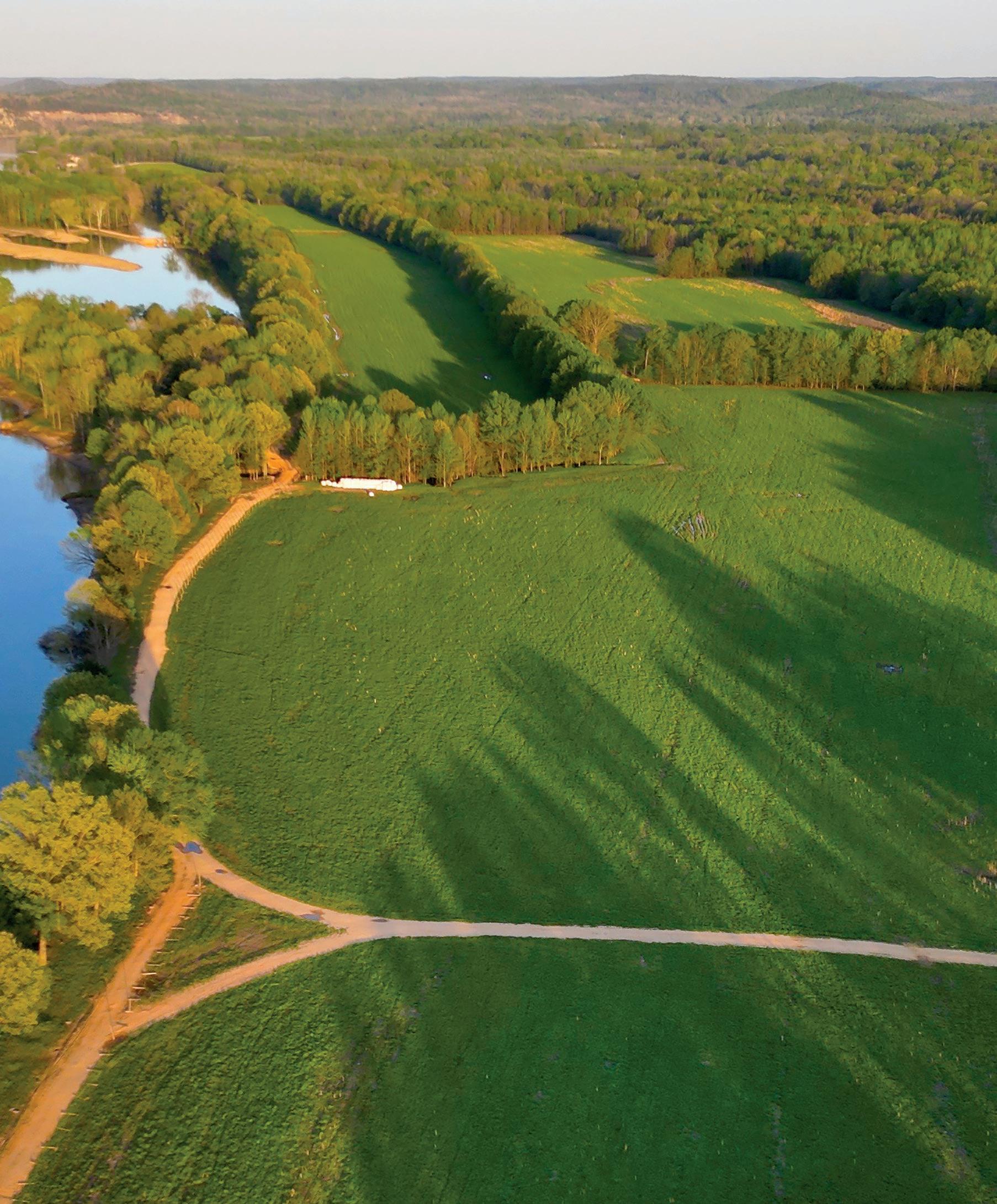 The main land portion of roughly 1,000± acres is a good mix of open pasture and hardwoods. Historically, the fertile bottomland soils have been utilized for row crop production, but currently, the improved pasture ground is cut for hay consisting of ryegrass, fescue, orchard grass and clover blend. Roughly 300± acres of open ground and pasture, 38± private lake, 170± acres of WRP easement teaming with wildlife and waterfowl. Over 13 miles of improved interior road network, along with a freshly graded 3,100-foot private plane runway that makes a quick 25-minute flight to Nashville and Memphis by private aircraft. Enjoy the benefits of a fully approved and charted airfield—Island Bend Farms Airport (FAA Chart Identifier 4TN9). Two separate inlets from the Tennessee River meander through the bottomland, forming the private lake and flooded cypress slough. The wooded hilltops provide ideal sites for building your very own 5+ bedroom estate, compound or resort overlooking the river for miles. Included with the property are two half-acre lots on Scenic Lane as part of the Scenic Lane River housing development on the riverbank, as well as a modern tiny home on stilts overlooking the river, inlet and beach area, and a private pool coming soon! There is also a 148± foot by 96± foot pole barn on the property for storage of all farming, hunting or maintenance equipment needed.