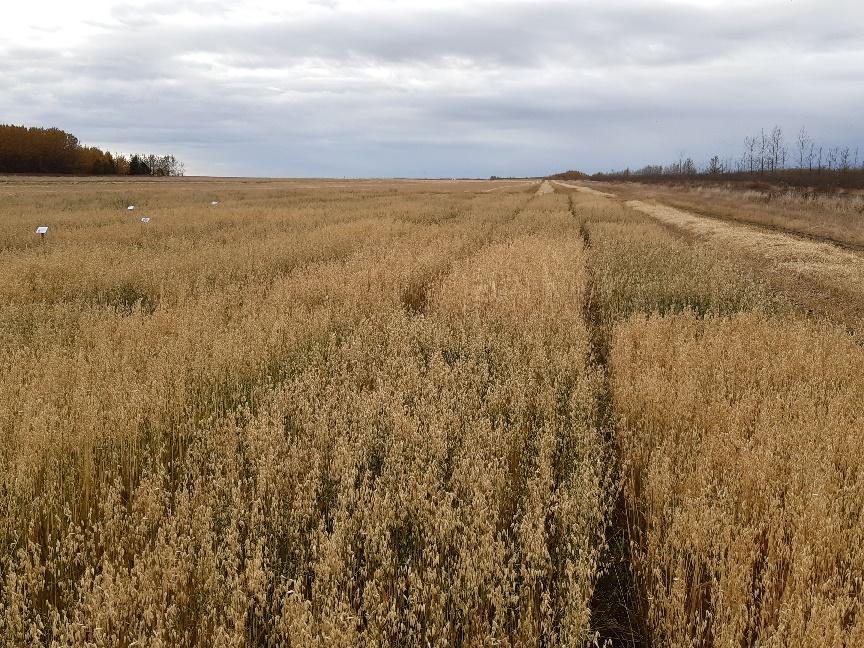 Tilraunin var uppskorin þann 20. september (Mynd 13). Áberandi var hve grænn hálmurinn var og hliðarsprotar höfðu náð litlum þroska.