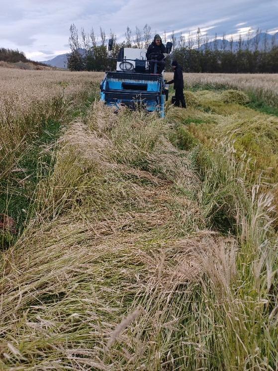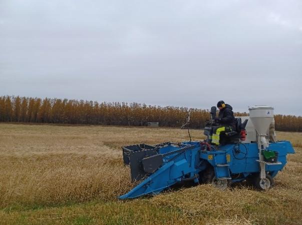 Mynd 5. Tilraunin þreskt með Wintersteiger reitaþreskivél