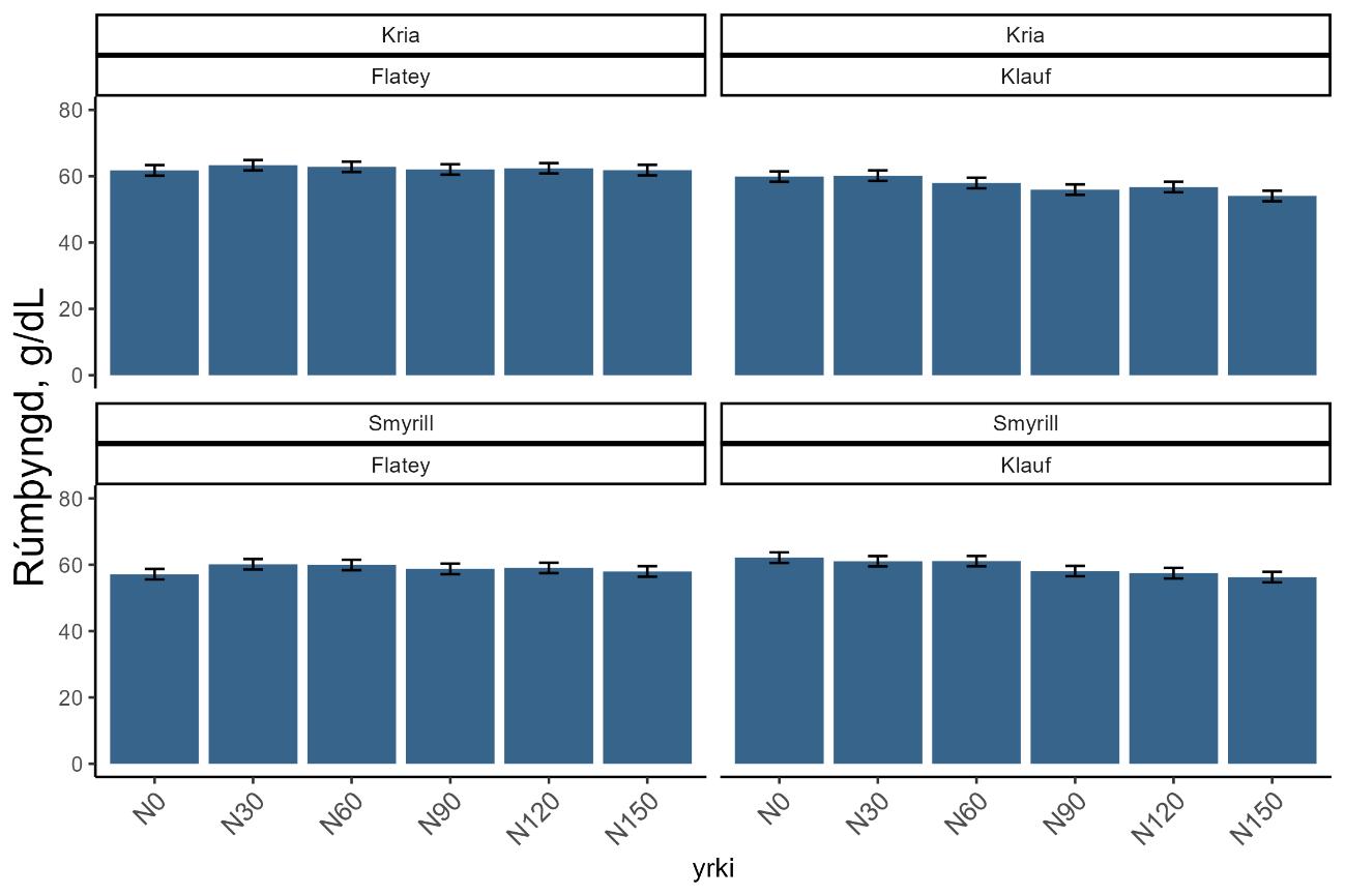 Mynd 4. Rúmþyngd á Flatey eftir yrkjum