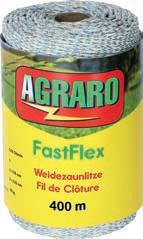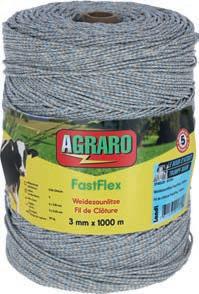 Agraro. Ré-électrification grâce au regroupement des conducteurs et aux conducteurs qui se croisent. Résistance : 0,06 ohm/m. Conducteurs : 6 × 0,15 mm inox, 3x 0,25 mm cuivre. Charge de rupture : 110 kg.