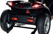 Commutateur Hi-Low, bouton de réglage en continu de la vitesse, marche avantarrière commandée par bascule, lumière, témoin de charge de la batterie (état de charge), jantes alu à 4 branches, corbeille frontale, système