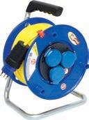 3 Steckdosen: T13/3, 230V, 10A. Stecker: T13/3, 230V, 10 A. Kabellänge: 25 m. Material: Spezialkunststoff, verzinkter Stahl.