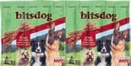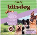 bitsdog. En-cas pour tous les chiens. Sans gluten. Avec du saumon, des acides gras oméga-3 et oméga-6. Favorise le métabolisme et la structure des articulations et du cartilage.