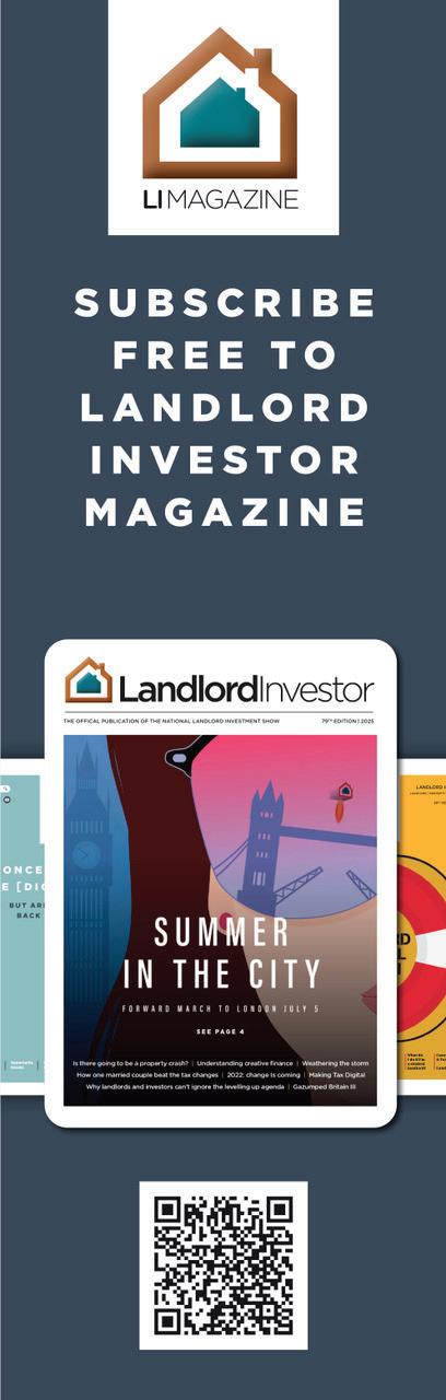 PLEASE NOTE: The National Landlord Investment Show, LIS Media and Landlord Investor Magazine are content aggregators only. Views, statements and opinions expressed in articles, reviews and other materials herein are those of the authors, exhibitors and third-party contributors and not the editors and publishers of LI Magazine. Under no circumstances does the content of this publication constitute investment or legal advice. We do not undertake to advise individuals or organisations upon investment strategy. All investments should be approached with caution under professional guidance. While every care has been taken in the compilation of this publication and every attempt made to present up-to-date and accurate information, we cannot guarantee that inaccuracies will not occur. LIS Media Limited and our contributors will not be held responsible for any claim, loss, damage or inconvenience caused as a result of any information within these pages or any information accessed through the promoted links. Published by LIS Media, Registered address: Foresters Hall, 25-27 Westow Street, London SE19 3RY. © 2024 LIS Media Ltd.