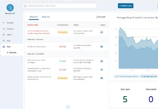 Manage: HCM allows landlords to manage their entire property portfolio without requiring pre-installed hardware, although optional device installation can provide deeper insights. Cases are easily created and assigned to team members, with task management features that ensure issues are tracked and resolved from start to finish.