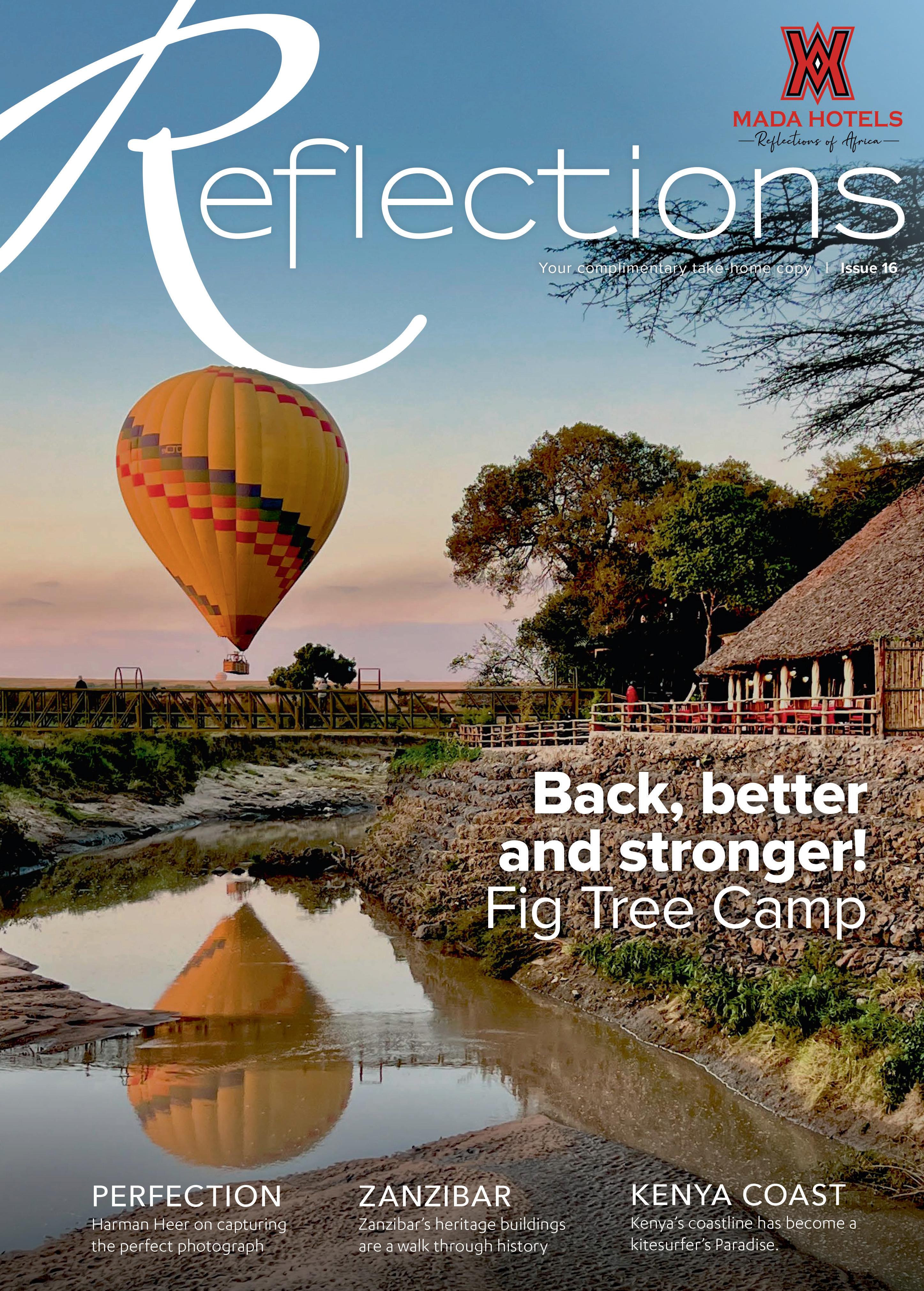 The response from our guests has affirmed these improvements, and we proudly acknowledge that Fig Tree Camp remains a leading luxury safari camp in the Mara. This remarkable journey of recovery makes it a fitting cover story for this year’s Reflections magazine.