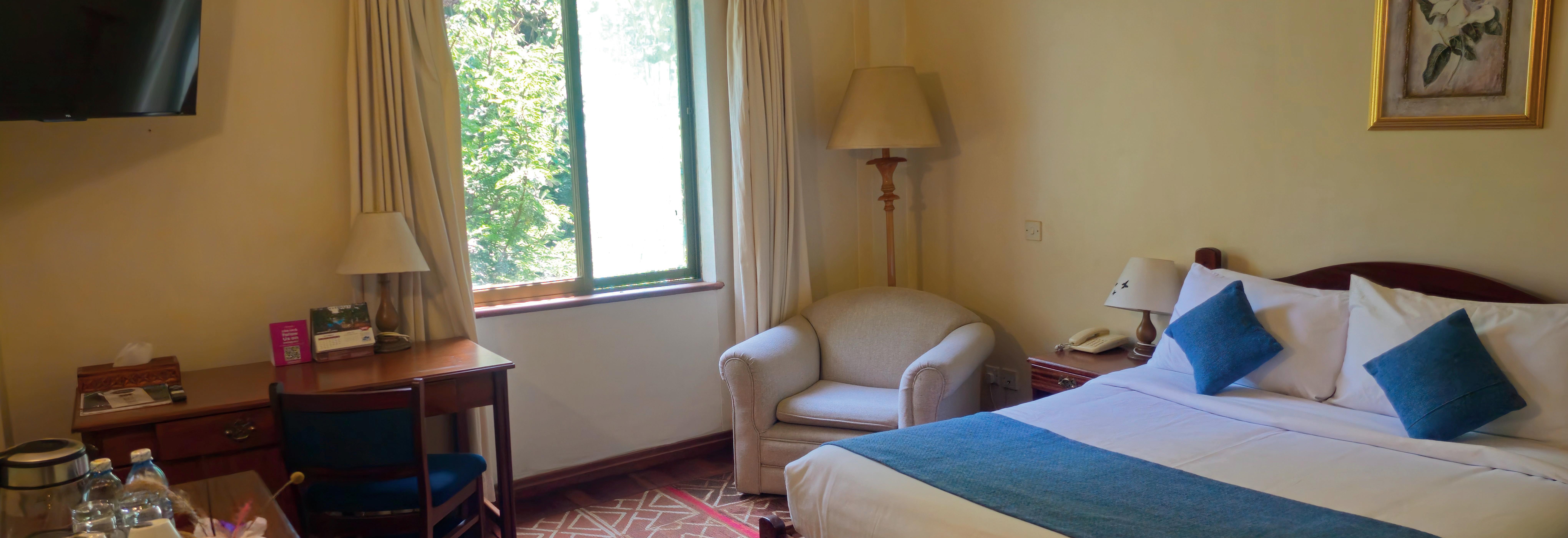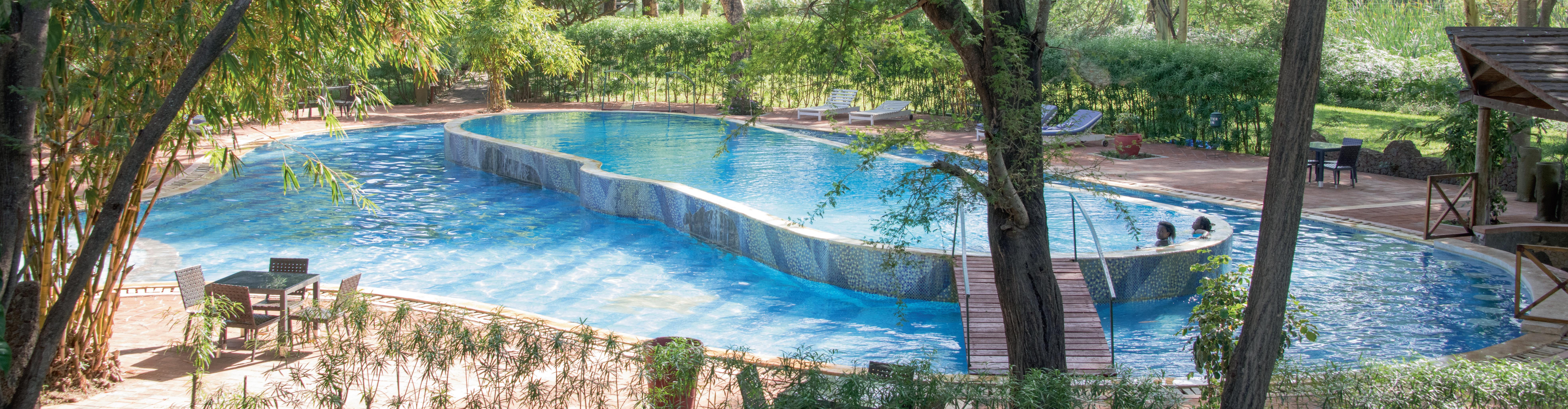 The property sits on 25 acres of landscaped grounds, home to over 100 bird species, with the delightful Kiboko Spring flowing through the estate. Guests can relax by the swimming pool, enjoy meals at the restaurant or coffee shop, and unwind with attentive service in a tranquil setting.