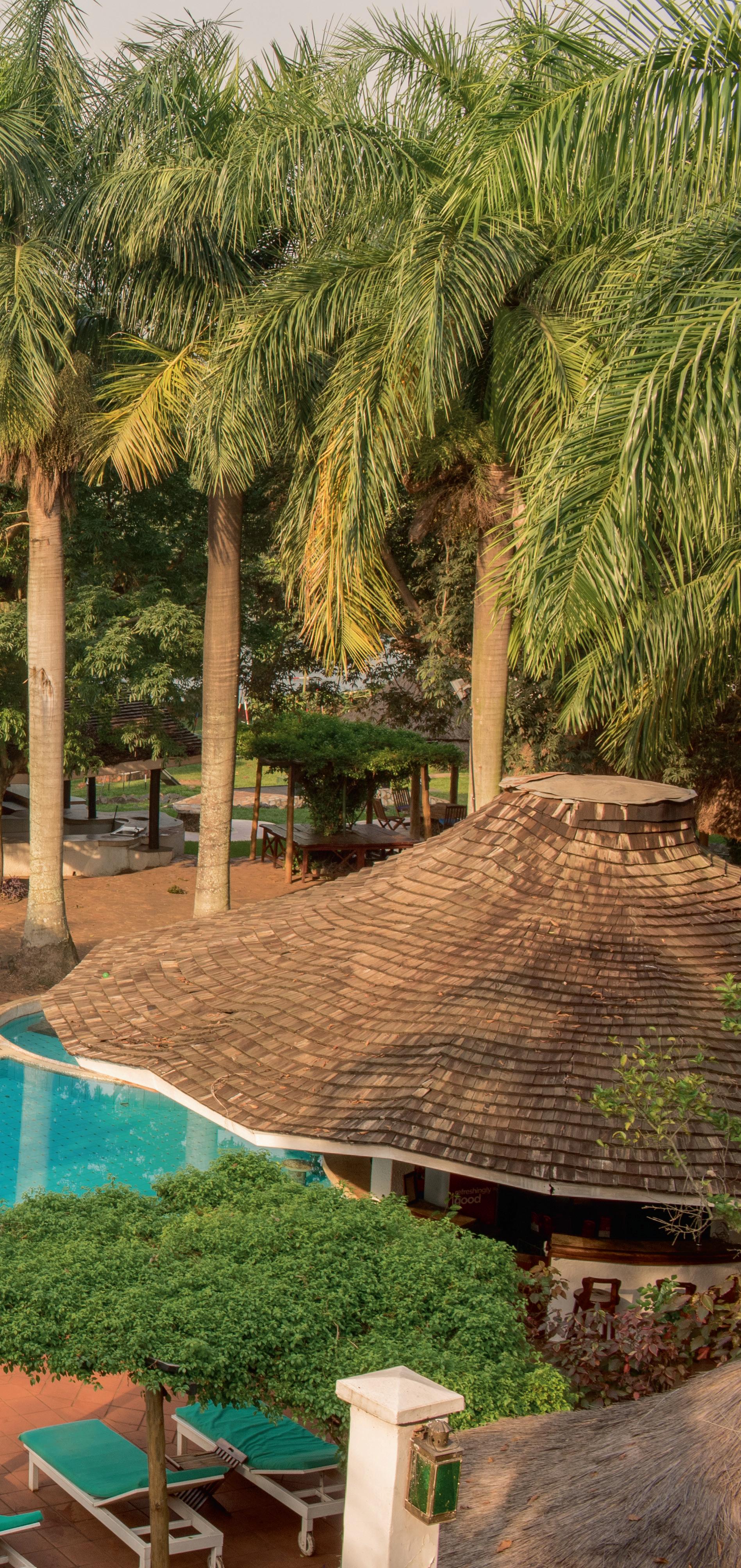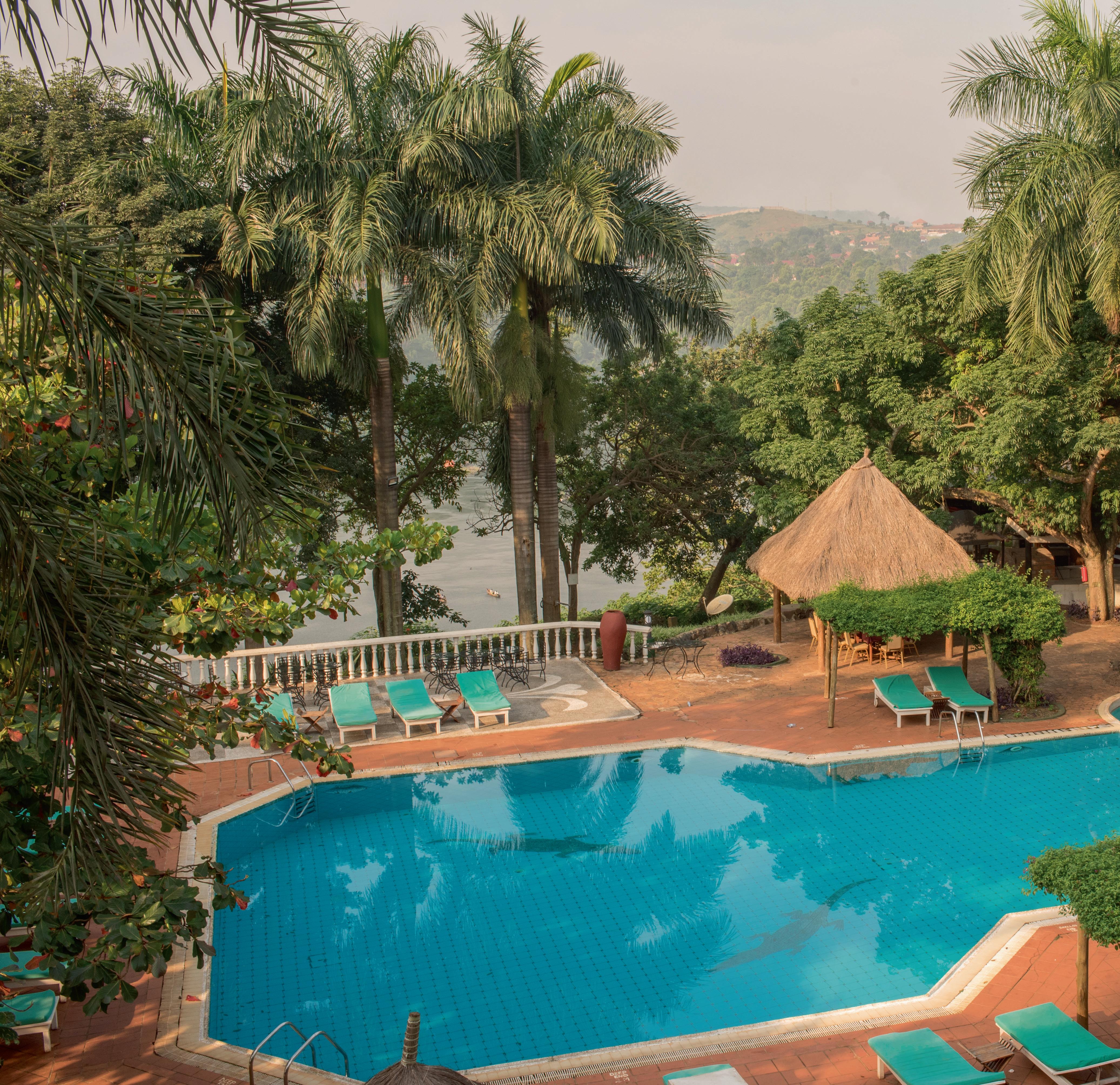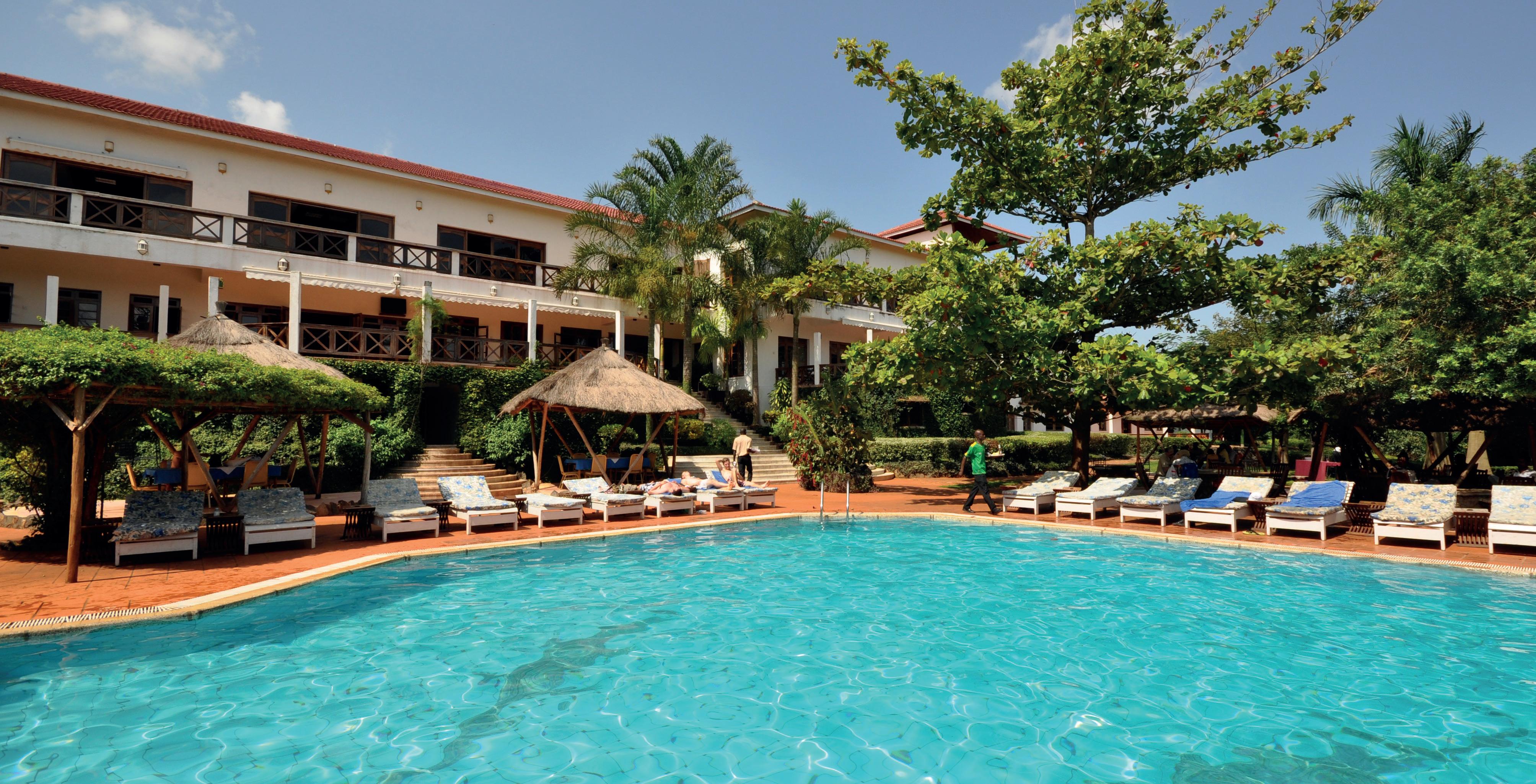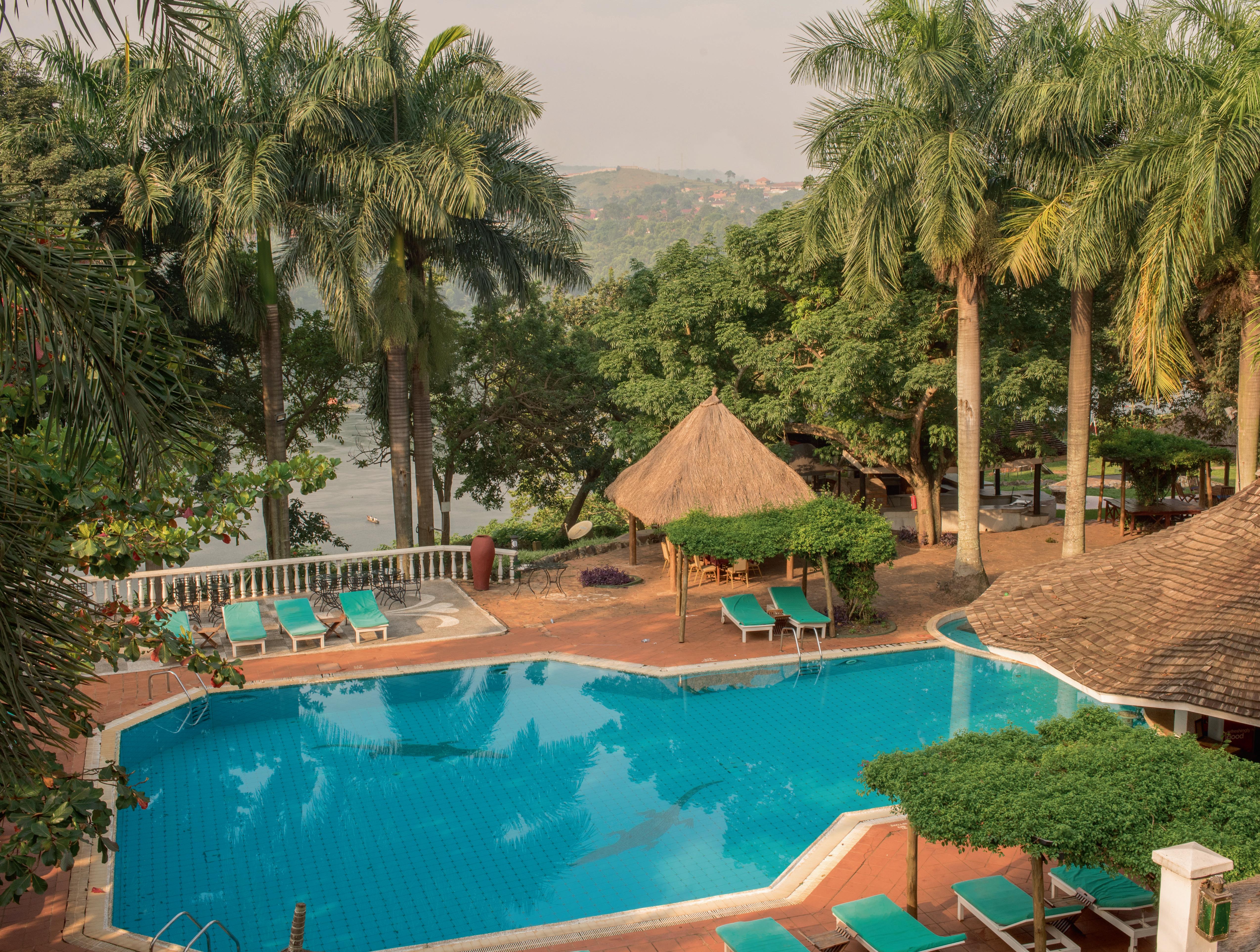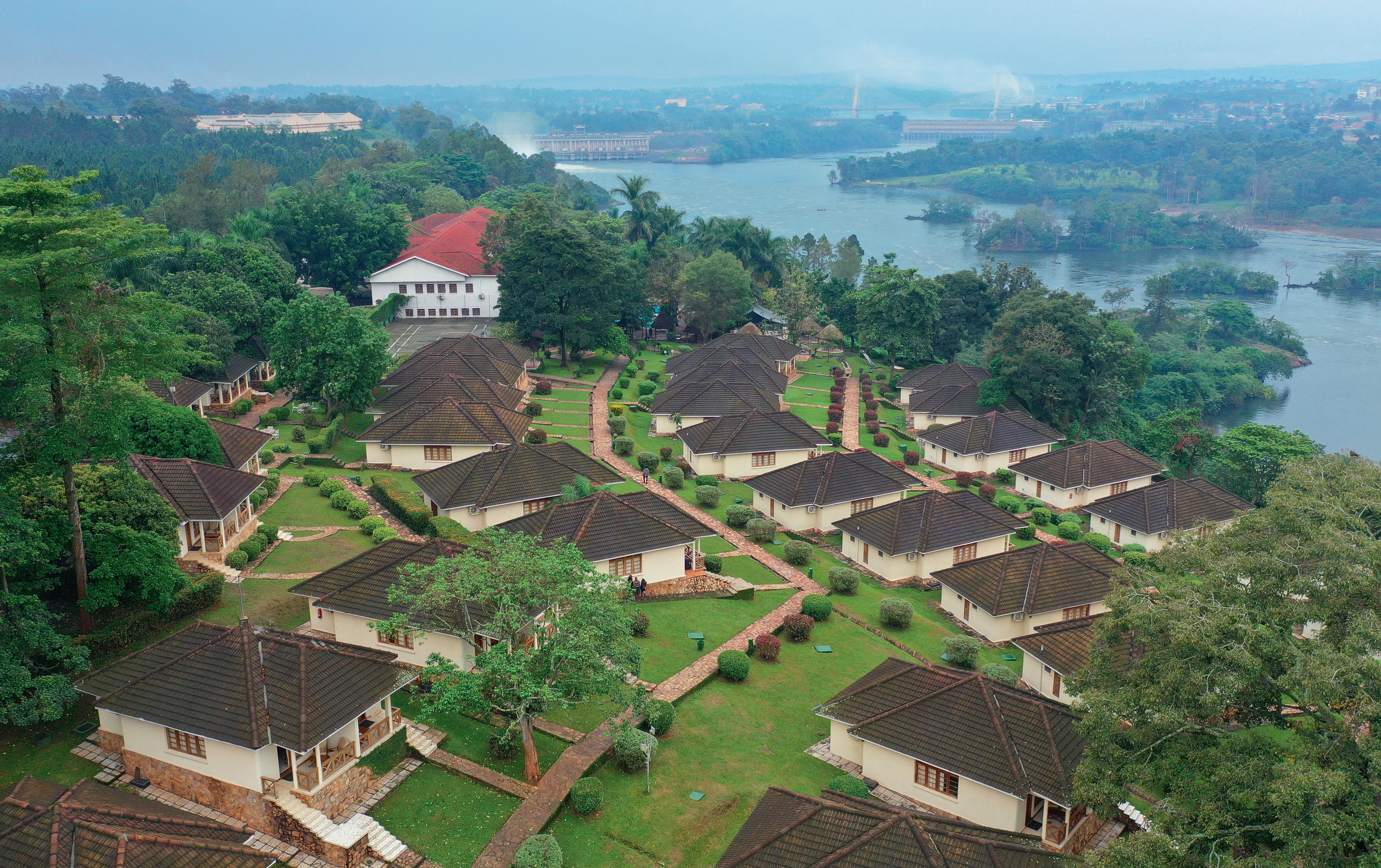 The resort is located 4 km from Jinja town, with easy access to local attractions such as white-water rafting on the Nile, an 18-hole golf course at Jinja Club, and other recreational options.