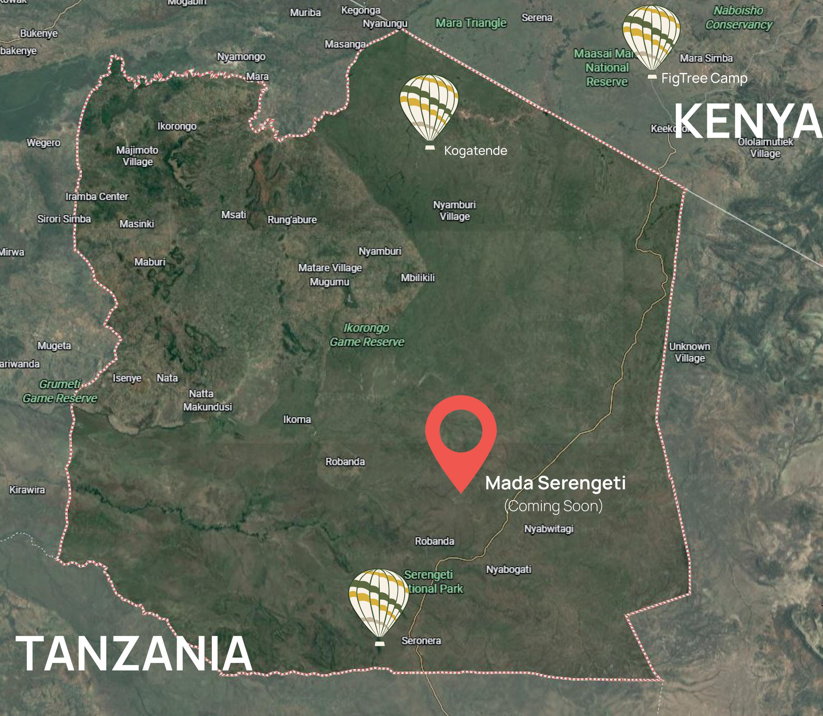 Adventures Aloft currently operates from launch sites in Ndutu (Ngorongoro), central Serengeti (Seronera), and northern Serengeti (Kogatende).