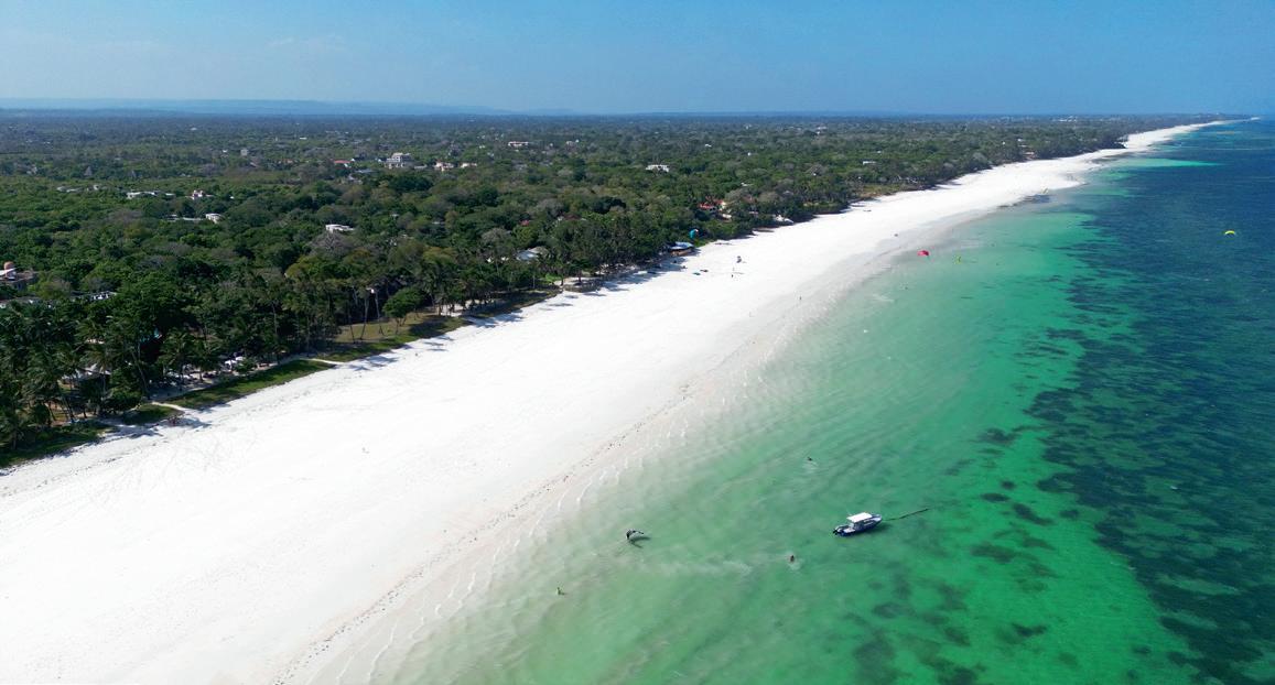 The Kenyan coast is blessed with beautiful beaches galore, but Diani may be the fairest of them all. With 15 km of powdery white sand and waters calmed by an off-shore coral reef it provides ideal conditions for swimming, snorkelling, scuba diving, kite surfing, and water sports like windsurfing and kiteboarding.