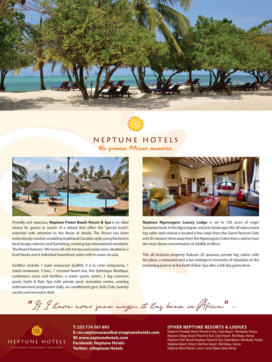 she is exploring. “There are so many beautiful places driving distance from Nairobi. I just get in the car and go.” She is especially excited when her Safarilink flying timetable includes a night’s stopover in Diani on the Kenyan coast. “I was built for the beach,” she says. “I love the tropical weather. It gets me relaxed. We get a hotel room and a chance for a calm, relaxing and beautiful time.”