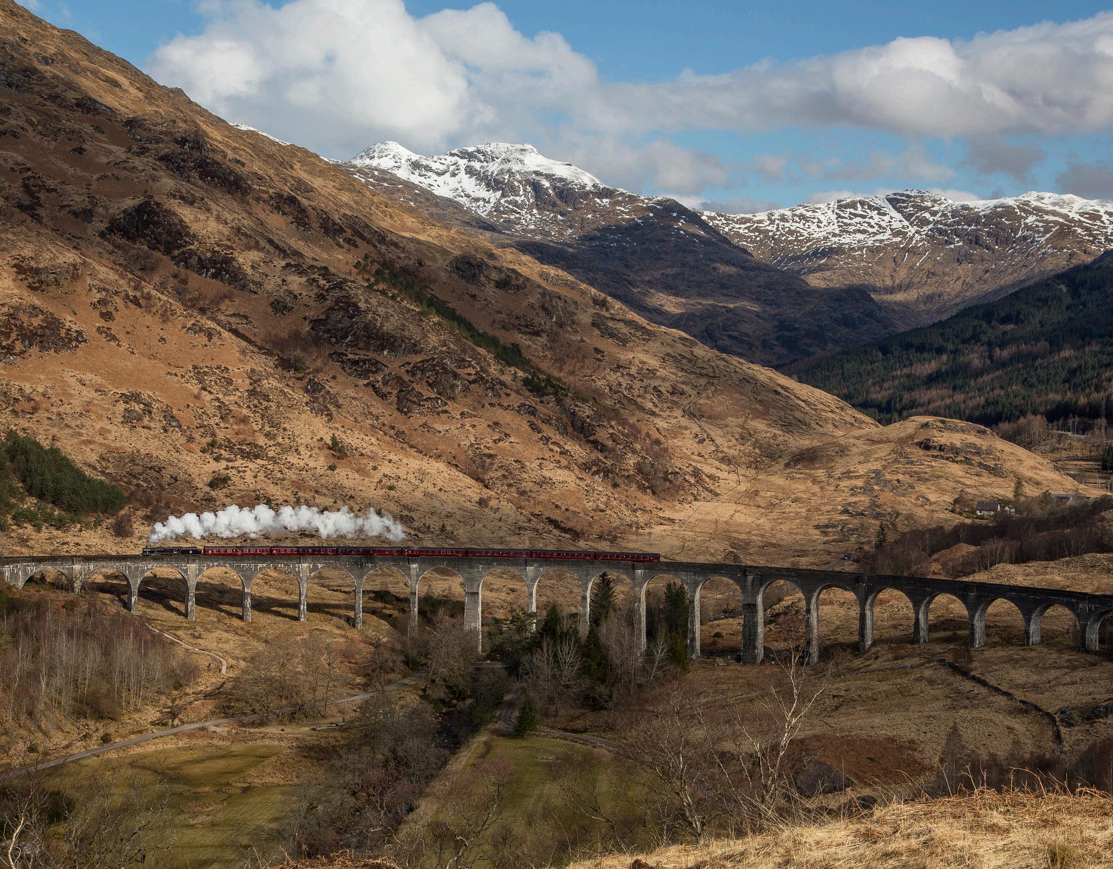 Described as the greatest railway journey in the world, this 84 mile round trip takes you past a list of impressive extremes. Starting near the highest mountain in Britain, Ben Nevis, it visits Britain’s most westerly mainland railway station, Arisaig; passes close by the deepest freshwater loch in Britain, Loch Morar and the shortest river in Britain, River Morar, finally arriving next to the deepest seawater loch in Europe, Loch Nevis!