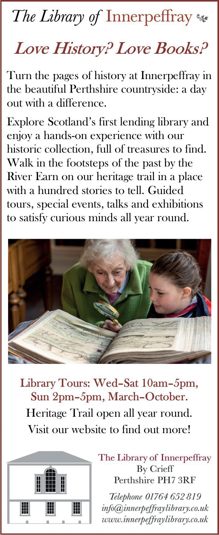 Turn the pages of history at Innerpeffray. Home to Scotland’s first free public lending library founded in 1680. Today you can still read rare books and browse diverse collections. Tours available. www.innerpeffraylibrary.co.uk