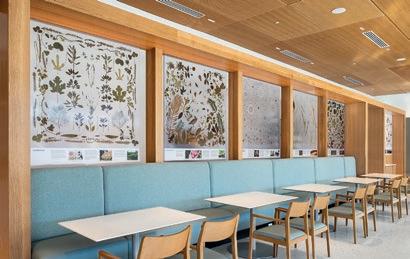 se solicitó el diseño de un conjunto de obras de arte permanentes para en el nuevo centro. Este conjunto proporciona un inspirador panel de fondo para visitantes y exhibe detalles e historia de la investigación y las colecciones del Jardín. Especímenes de plantas de todo el Jardín se recolectaron, prensaron, secaron y se colocaron en un conjunto de nueve paneles de vidrio fusionado