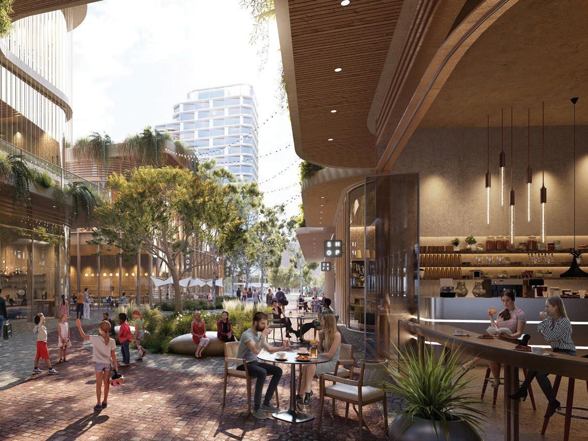 The landscape has been conceived as the primary structure for movement, activity and identity across the site. Waterfront promenades, retail edges, laneways and hospitality terraces are all shaped around public open space, ensuring that daily life within the precinct is closely connected to green spaces and water at every touchpoint.
