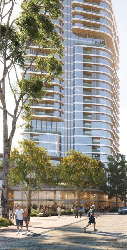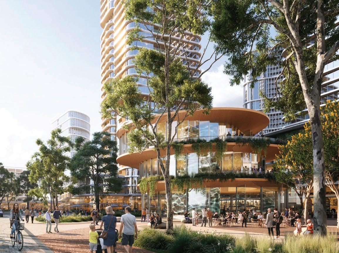 Alongside the public open space in Precinct B, is a new district-scale foreshore park designed to host everyday recreation, community gathering and major public events. This is supported by a finer-grain sequence of neighbourhood spaces including family play areas, lawns, civic plazas, shaded seating and informal recreational areas embedded within the urban blocks. Together, these spaces connect the significant residential, commercial, entertainment and retail offering to establish the public realm as the social and environmental backbone of the new precinct
