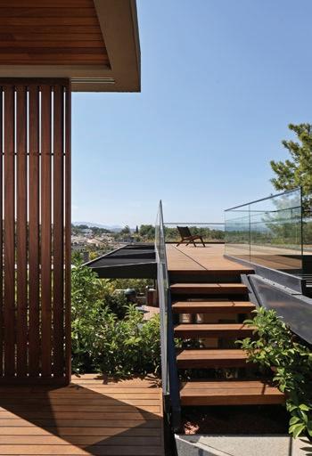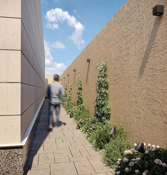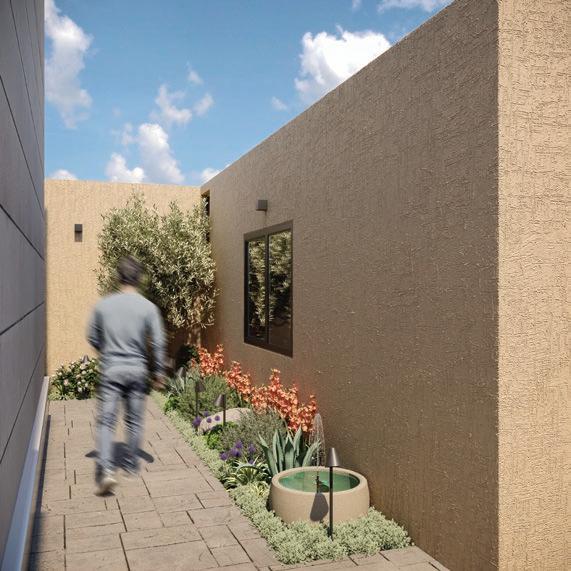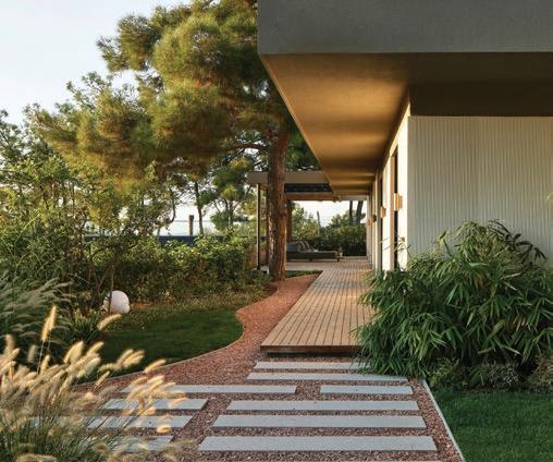 maintenance plants chosen for their resilience and visual richness. Because the plot was compact, every square meter had to be functional. A narrow side setback, for example, was transformed into a lush green passage using climbing plants and structured shrubs, adding vibrancy without compromising movement.