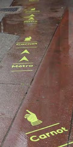Sidewalk art can be a low cost way of adding wayfinding, and gives pedestrians opportuntiy to engage with their their surroundings as they walk and help connect the district; other locations can be added through out the district