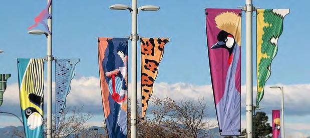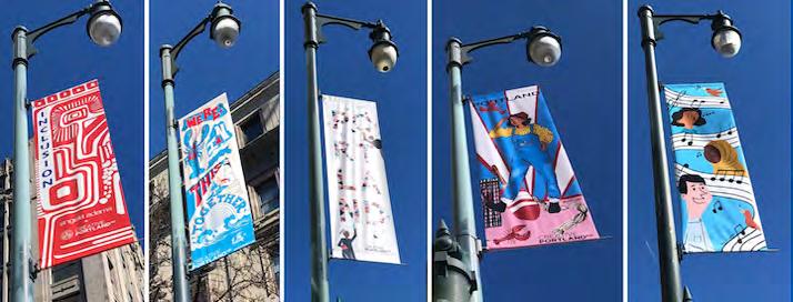 Artistically-designed light pole banners could be used as a cost effective way to showcase a local artist and the district’s branding and unify the district.