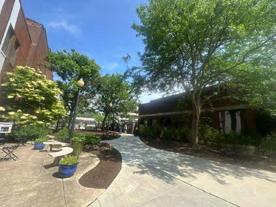 Interactive art, sculpture, pavement painting, and functional art (like swings, seating, and tables) could help create a fun visual landmark and welcoming gathering space for district visitors. The hillside behind the area will naturally attract children to play, especially if their families have a reason to linger. This space could become a natural meeting spot for friends and families to gather before or after enjoying a meal, art show, or movie in the district.