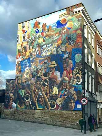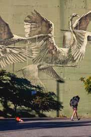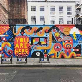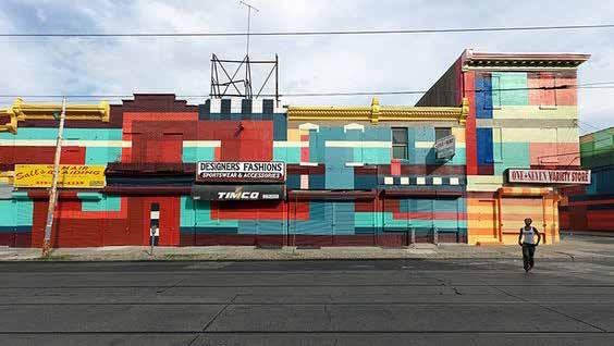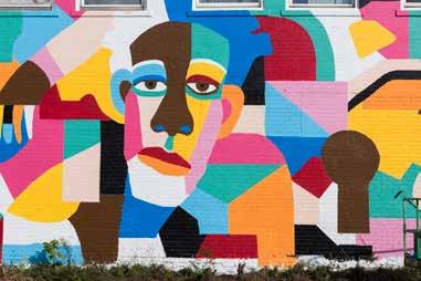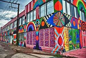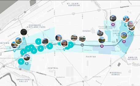 and Euclid Avenues. This area contains a higher density of buildings at street level making it a more walkable portion of the neighborhood ideal for murals, wayfinding, streetscape amenities, and other human-scale elements. The high activity of this Geography will increase the visibility and value of public art. For example, the Lauren Noel mural at 36th and Euclid, implemented in the Fall of 2018, filled a gap in the Euclid Corridor where a vacant, blighted building stands. Travelers by car, bike, and bus now have a vibrant, colorful landmark to enjoy as they travel along the corridor. Local news picked-up the