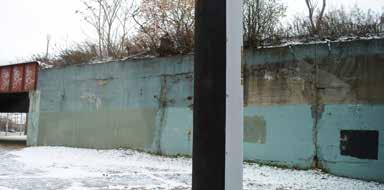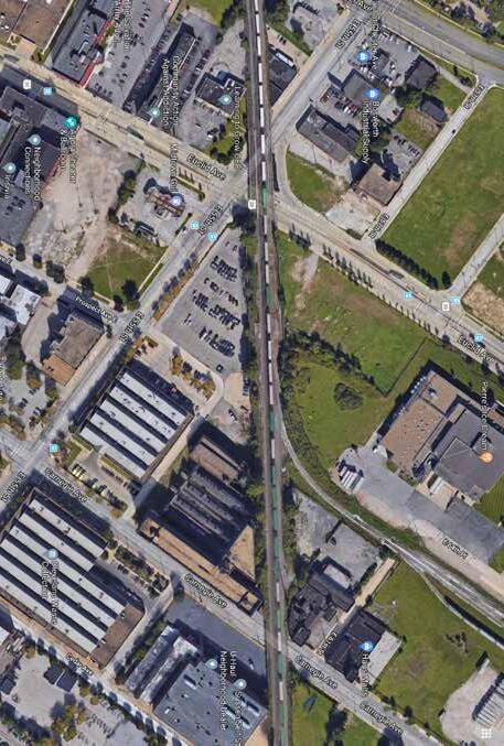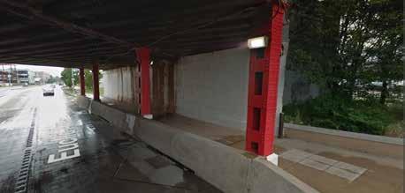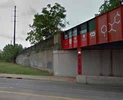 Several large vacant landmark buildings loom in the neighborhood, such as the Warner & Swasey building. Others are large warehouses that are kept in use but lack ground floor retail. Finally, community liabilities like dark underpasses and the railway corridor create noise and unsafe spaces. Pedestrians are dissuaded from walking due to lack of public destinations.