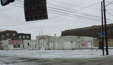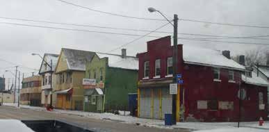 borhood, many of which are not landscaped or well-kept. These lots, often next to historic, denser, or larger buildings, create gaps in the built environment that exudes feelings of loneliness, ghost-like reminders of the past. One of the most visually significant gaps is the bundle of empty lots at all four corners of E. 55th and Euclid Ave.