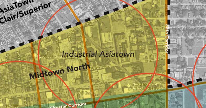 Industrial Asiatown is a major connection between MidTown and AsiaTown. It contains harsh boundaries at both Payne and 55th and consists of a large, occupied warehouse district. Below are the focus areas within Industrial AsiaTown: