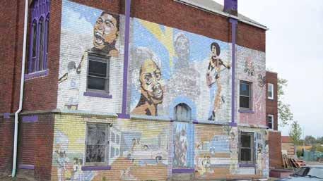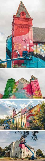 story of the mural and local residence and pedestrians were intrigued and pleased by the improvement. The property owner hopes the mural will help spur investment in the property. Early plans hope to see the building developed into a restaurant. The mural also builds on the investment in the Masonic Auditorium, recently purchased by the leading concert promoter in the country, Live Nation.