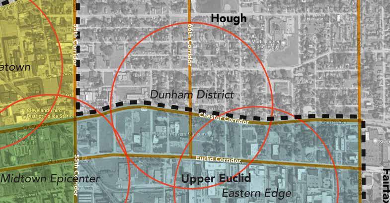 Despite these major investments, this area sees challenges of pedestrian experience along the corridors of Chester, Euclid,