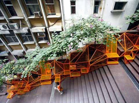 Also along this stretch, the Wilkins Street Plaza with its soaring canopy, bike racks and a variety of seating options, provides a place for pedestrians to take a break while visiting the Dequindre Cut.