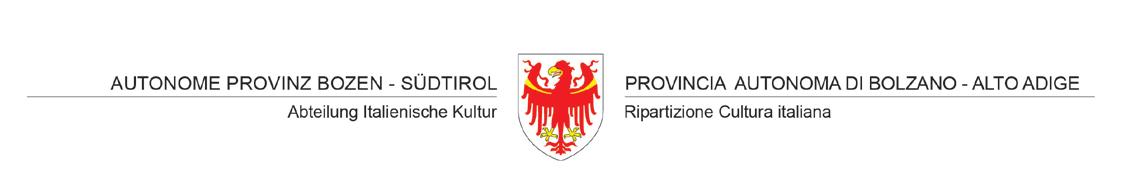 Via del Ronco, 2 – Bolzano 0471 411 230 ufficio.cultura.italiana@provincia.bz.it www.provincia.bz.it/cultura