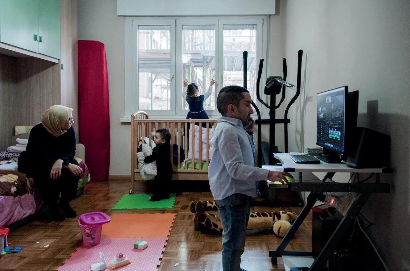“In aereo conosco un signore di Francoforte –racconta Mohammed – e mi offre ospitalità per qualche giorno. Il mio obiettivo, però, è la Francia: conosco un po’ la lingua, per me sarà più facile integrarmi”. Allora Momi sale su un treno con destinazione Strasburgo, appena al di là del confine. Vuole iscriversi all’Università, ha tutta la documentazione pronta, e il solo fatto di presentare richiesta gli garantisce la proroga automatica del visto per altri 2 mesi. “La Francia – racconta Momi – era appena uscita da un periodo di scontri e contestazioni partiti dalle comunità di immigrati delle Banlieu: il governo Sarkozy decise di dare un giro di vite anche → Masmoudi, ritratto in basso al suo tavolo da lavoro