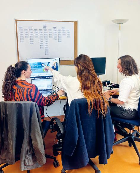 ◀ Implementare l'intelligenza artificiale in tutti i settori della pubblica amministrazione è un compito che richiede molte mani diligenti: qui, ad esempio, le collaboratrici della Ripartizione 9 che lavorano al nuovo portale myCIVIS.