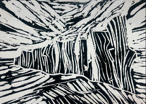 Wooden breakwaters 24 x 30 cm, mixed media on Masonite. 200.- €