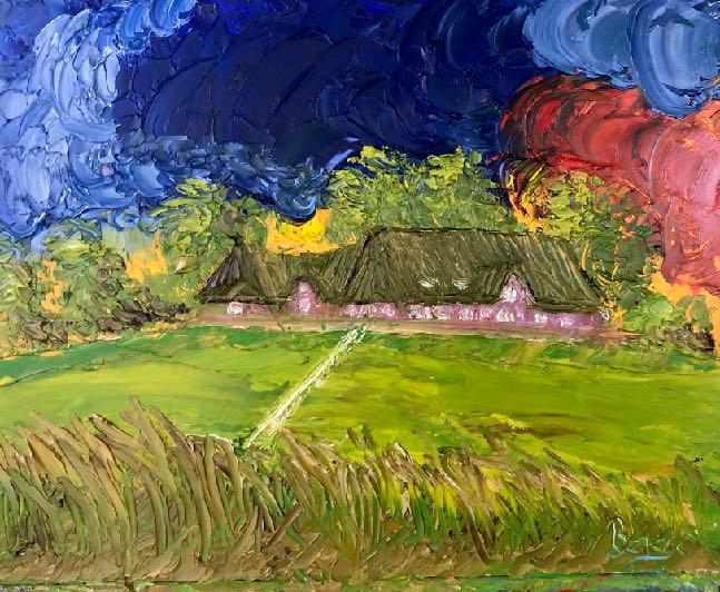 BorgiArt – Tom Dieck is living and working in northern Germany near the baltic coast in the land of the vikings. Most of his art are landscapes and seascapes painted in the countryside between North Sea and Baltic Sea. He startet painting after an inspiring visit at the Nolde Museum – the home of the famous expressionist Emil Nolde – in 2013. "When I saw the exploding colors in Noldes paintings, I decided to try working with colors for myself."