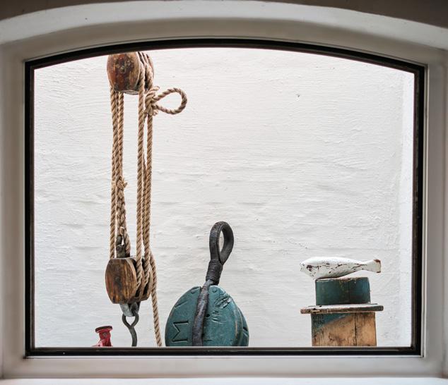 hölzernen Schiffsblöcken auf den Fensterbänken bis zu Bildern, Büchern, Schiffsmodellen. Sogar die Deckenlampen haben eine Kompassrose – nach Norden ausgerichtet! Anker und Bojen zieren den Vorgarten, der bei gutem Wetter oftmals Versammlungsort für die Redaktionskonferenzen ist.