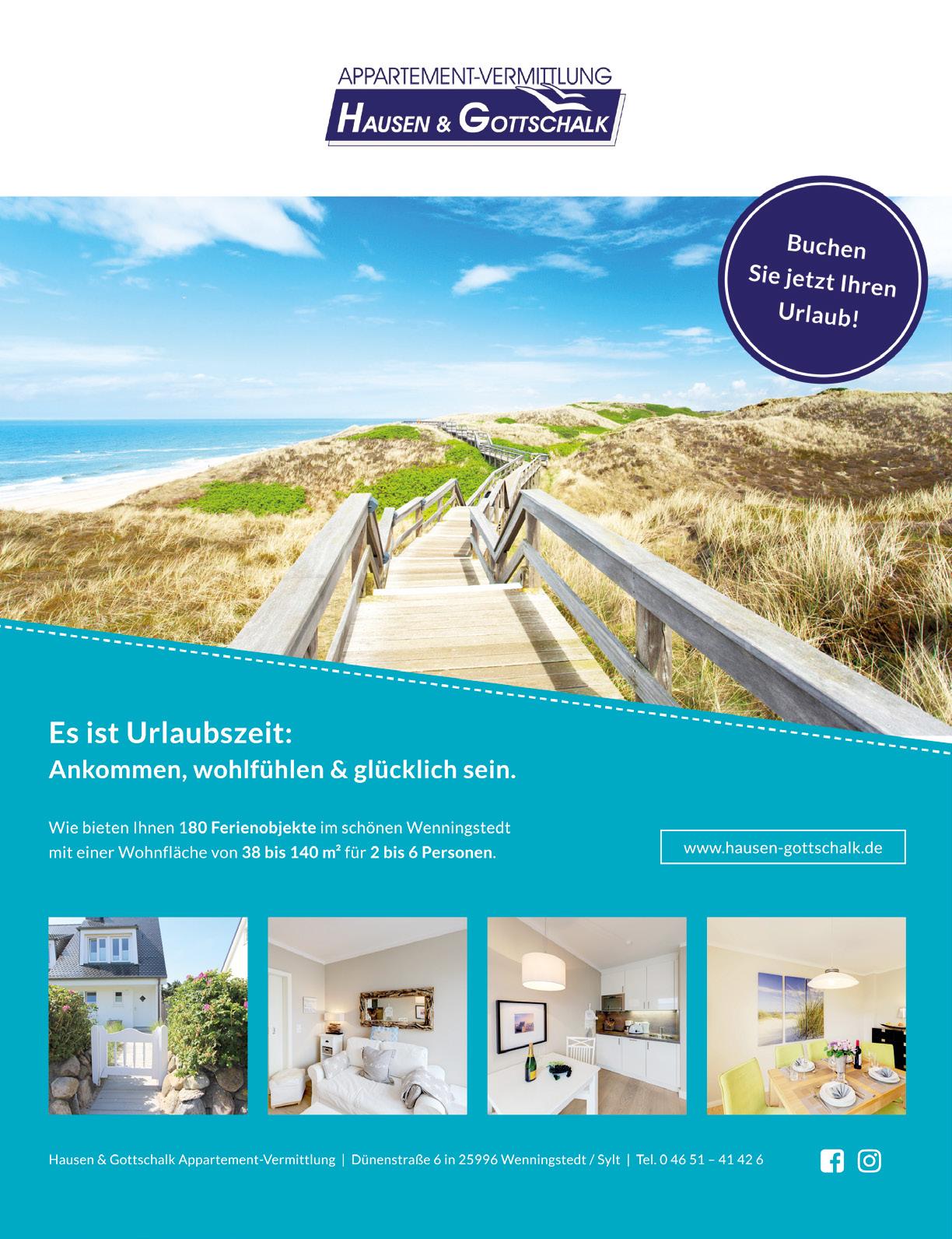 MEER 2023 INHALT RUBRIKEN Editorial 3 Übersichtskarte 6/7 Shop zum Bestellen 106/107 Impressum 142 Kreuzworträtsel mit nordischen Begriffen 143 Internet: Folgen Sie uns im Netz 144 Partner und Inserenten 144 Vorschau auf LAND & MEER 2024 146 INSEL-PARADIESE AMRUM ....................... 140 FÖHR 108 HELGOLAND .............. 112 LANGEOOG .................. 72 NORDERNEY 18 SYLT ................................ 64 Große Übersichtskarte 6/7 RÄTSEL mit nordischen Begriffen 143 An derKüste unterwegs LAND&MEER CampingBlog Fünf Seebrücken auf Usedom 86 Termine: Wassersport in St. PeterOrding 58 So schmeckt der Sommer 134 Die LAND & MEERHomestory 94
