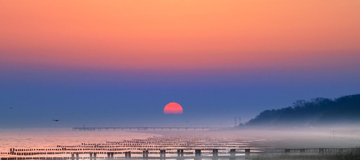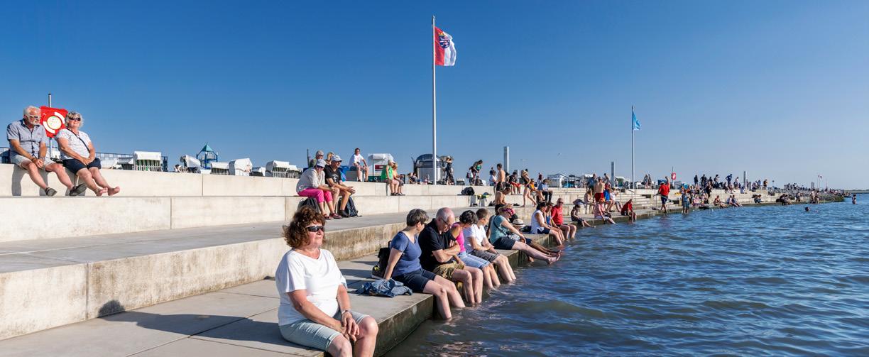 NORDEN VIEL NEUES AKTUELLE NEWS AUS NORDDEUTSCHLAND .................................. 16 Wasserstoffzüge in Niedersachsen, Orcas in der Ostsee, Hamburgs Hafengeburtstag, prämierte Ferienhöfe in Schleswig-Holstein. AUF DIE SCHNELLE TOUR KURZAUSFLÜGE PER SCHIFF ZU DEN OSTSEESTÄDTEN .............. 34 Ins Baltikum oder nach Schweden fahren Fährschiffe von den deutschen Häfen. Kurze Touren mit großem Erlebnisspotenzial. WANDERN AUF DEM MEERESGRUND BEI EBBE NACH NEUWERK ................................................................... 38 Ob zu Fuß oder mit dem Wattwagen – zur Insel Neuwerk geht es nur bei Niedrigwasser. Den genauen Weg kennen die Einheimischen. WILHELMSHAVEN STADT AM MEER 46 Direkt an der Nordsee gelegen, bietet Wilhelmshaven maritimes Flair. GEISTERNETZE AUS DER OSTSEE FISCHEN TODESFALLEN FÜR MEERESTIERE..................................................... 50 Jährlich gehen in der Ostsee bis zu 10.000 Netze verloren und werden zur Todesfalle für Meeressäuger, Fische, Seevögel und Weichtiere. Forschungstaucher suchen nach ihnen, um sie zu bergen. FAHRRADTOUR LÜNEBURGER HEIDE EIN TRAUM IN VIOLETT ........................................................................ 52 Wenn die Heide blüht, erleben Radlerinnen und Radler hier ein Paradies. ST. PETER-ORDING LEBENSFROH IN SPO – SPORT & SPASS 58 Feste feiern mit Sankt Peter Prost. Sport-Termine für Teilnehmende und Zuschauende an Meer und Strand. SYLT – GASTLICHE INSEL NEUE HOTELS UND GASTRONOMIEN .............................................. 64 Der neue Lanserhof in